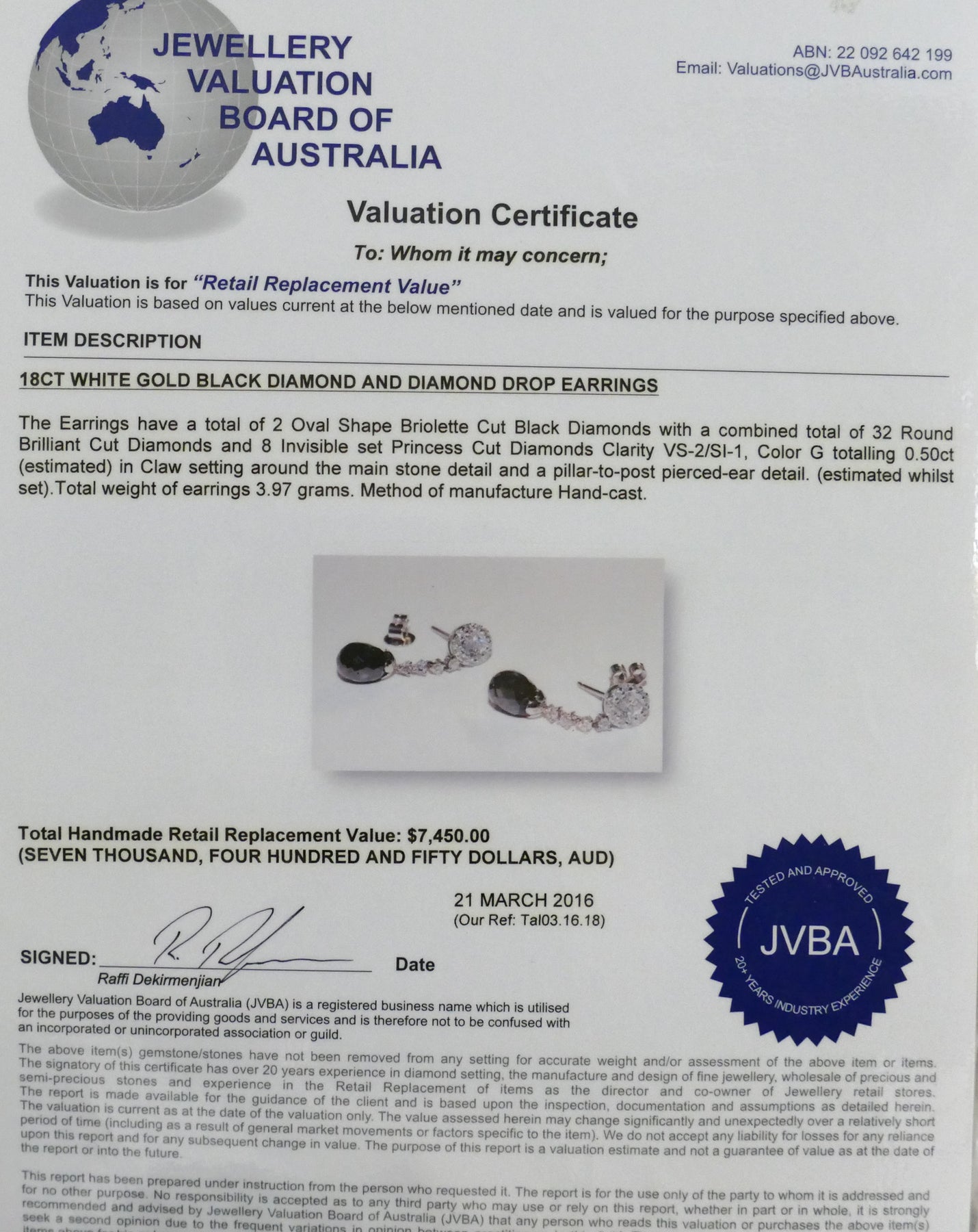 Regular price $3,390.00These gorgeous Black Diamond & White Diamond mid drop Chequerboard Cut Earrings are a wonderful match for our Number 111D - the stunning Black & White Diamond Ring.