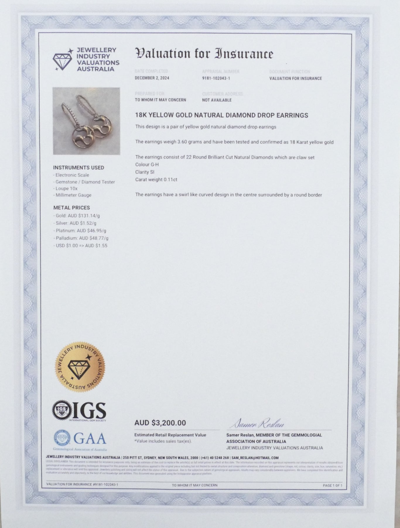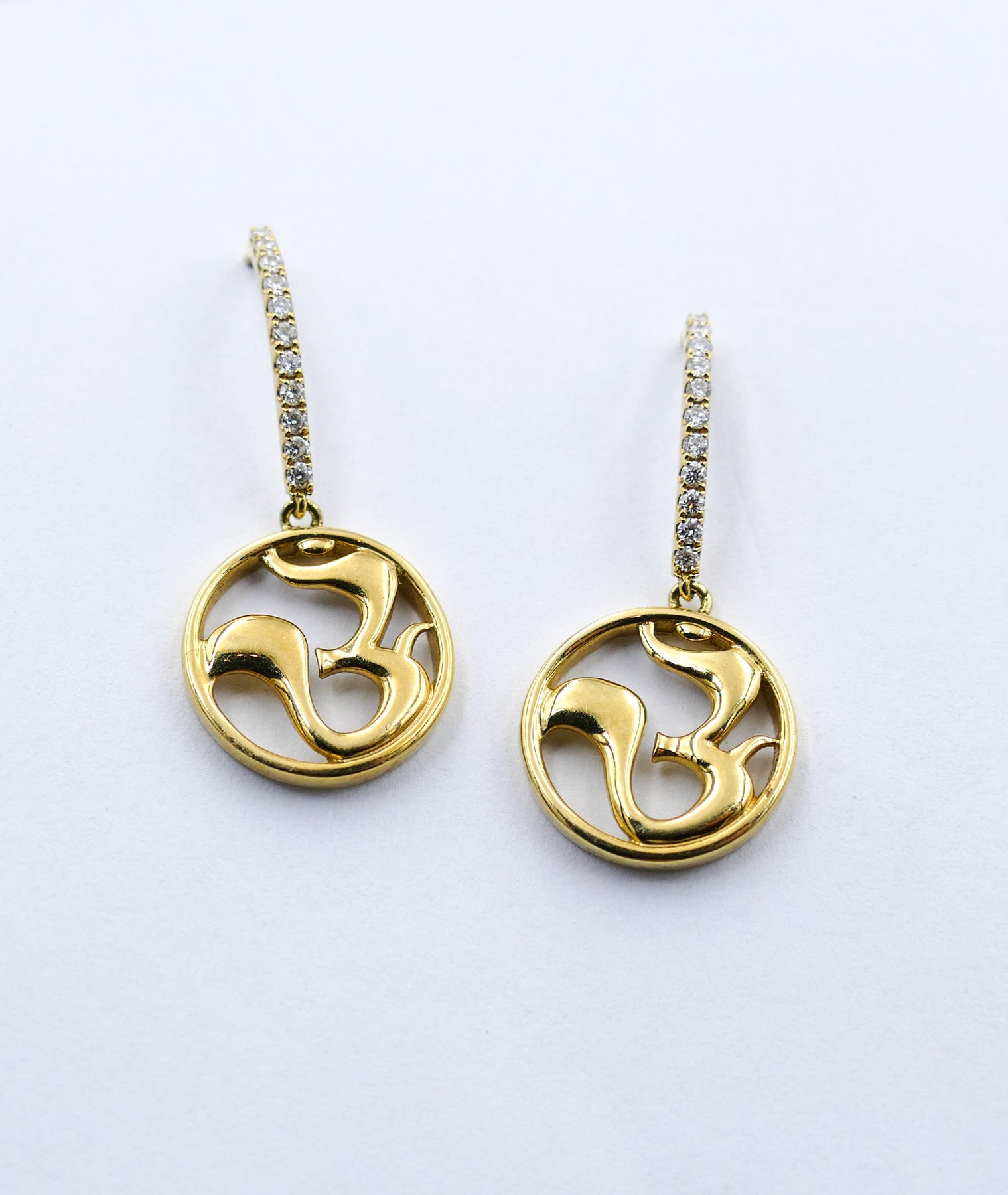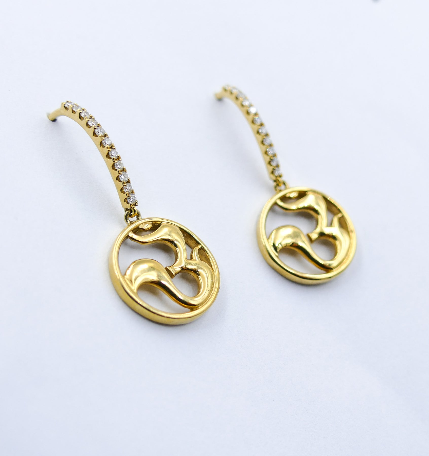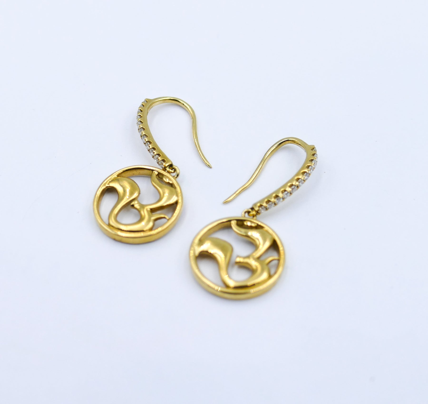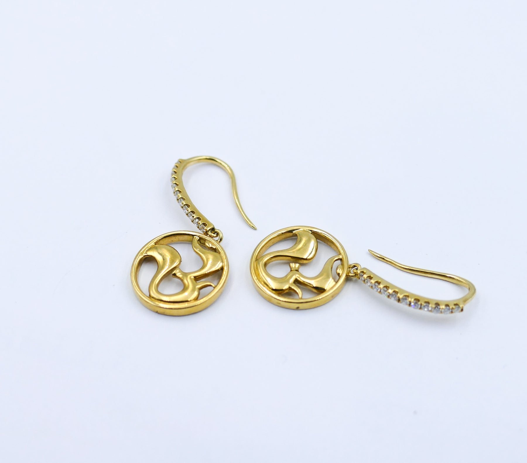 Regular price $1,890.0018ct Yellow Gold is the setting for these very sweet circular drop earrings.