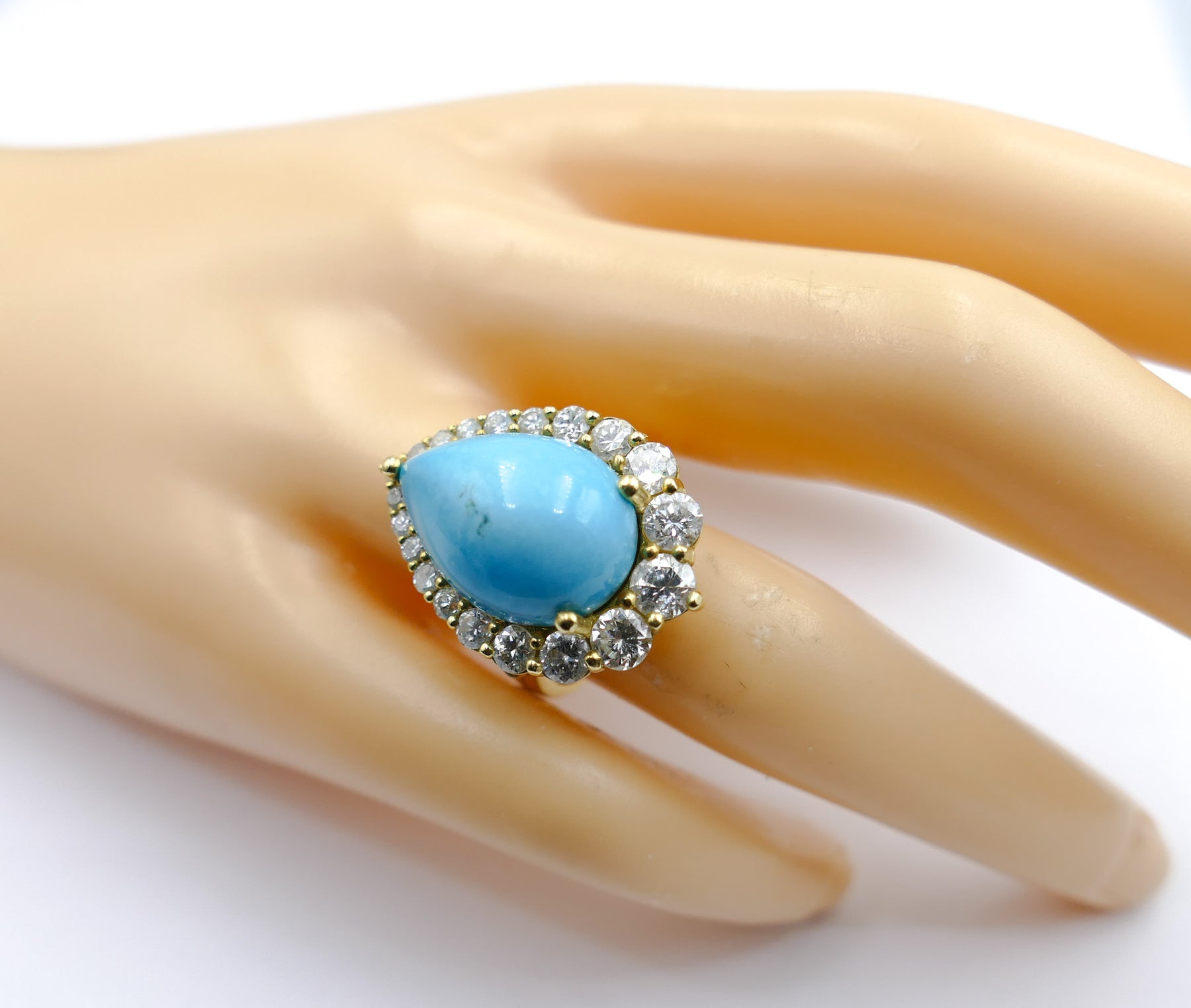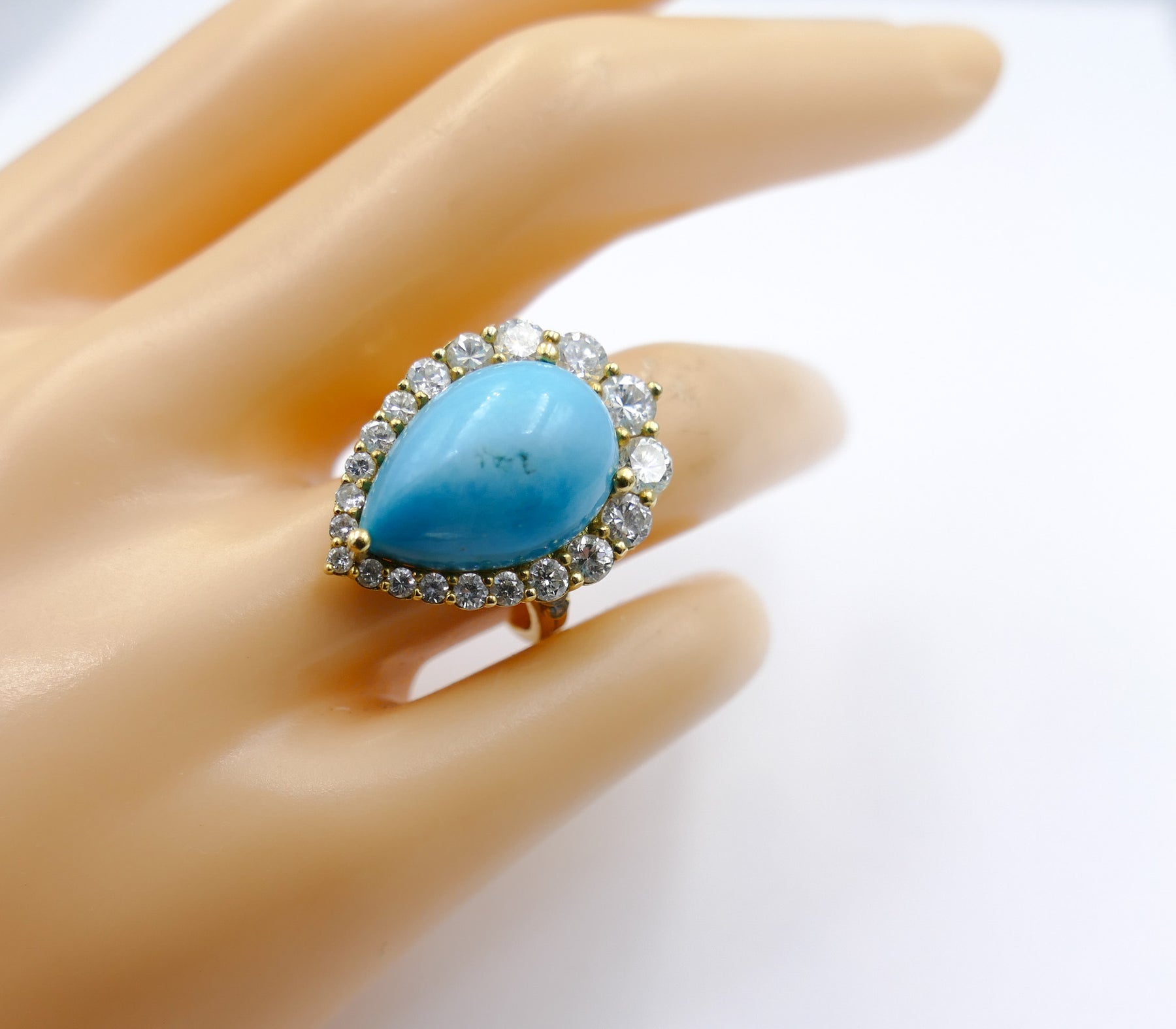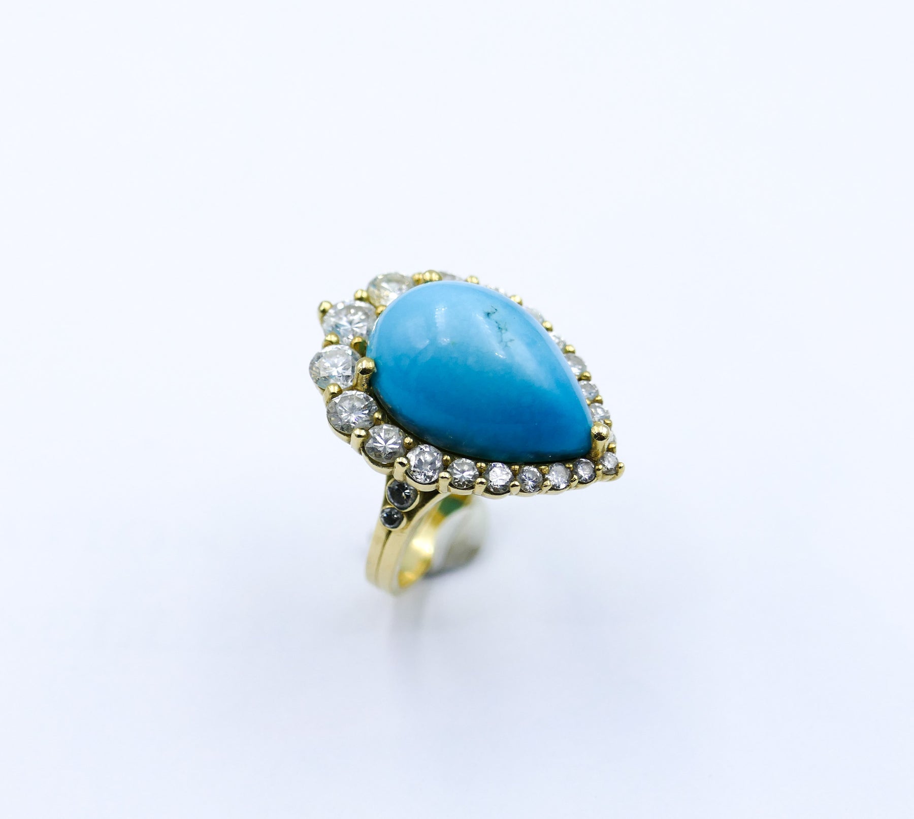Regular price $7,900.00SUCH a contemporary look is clear in this recently acquired, stunningly beautiful Turquoise & Diamond Pear Shaped Ring.