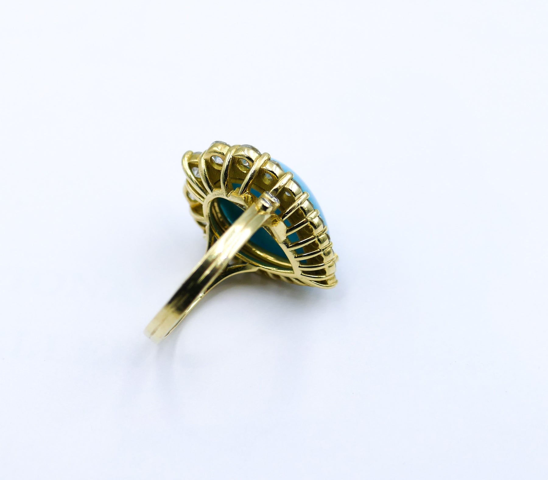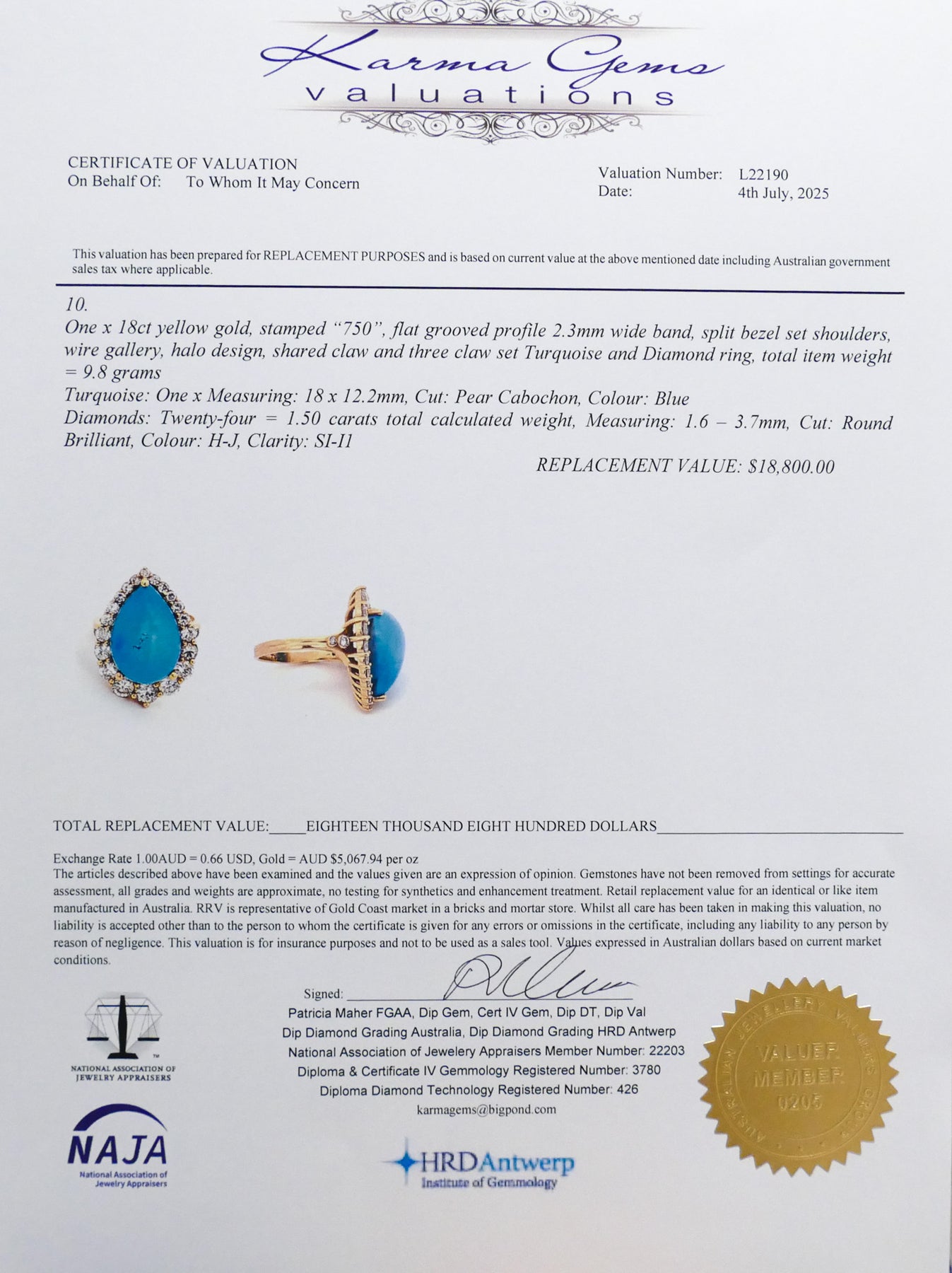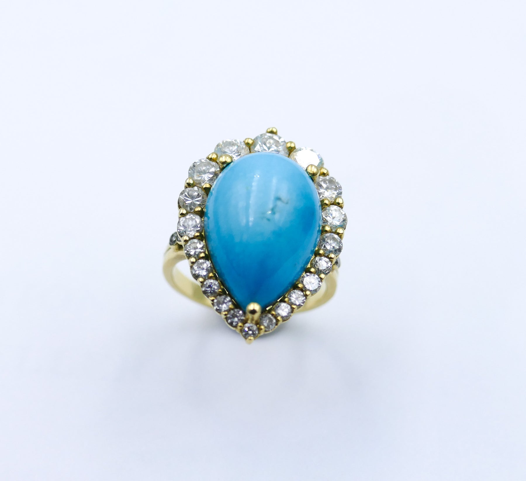 Regular price $7,900.00SUCH a contemporary look is clear in this recently acquired, stunningly beautiful Turquoise & Diamond Pear Shaped Ring.
