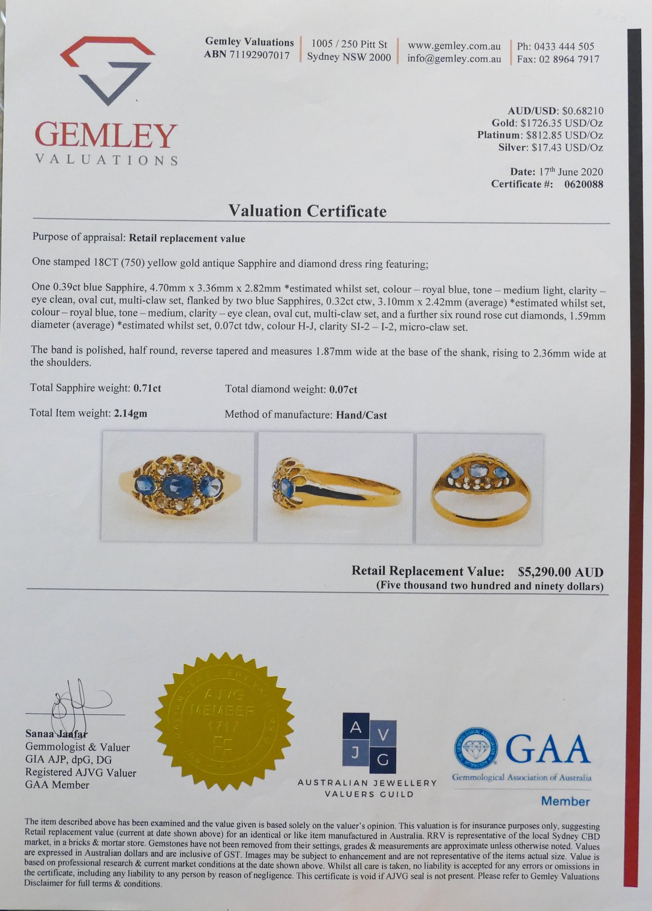 ANTIQUE HALLMARKED 18CT YELLOW GOLD CEYLON SAPPHIRE & DIAMOND DRESS RING